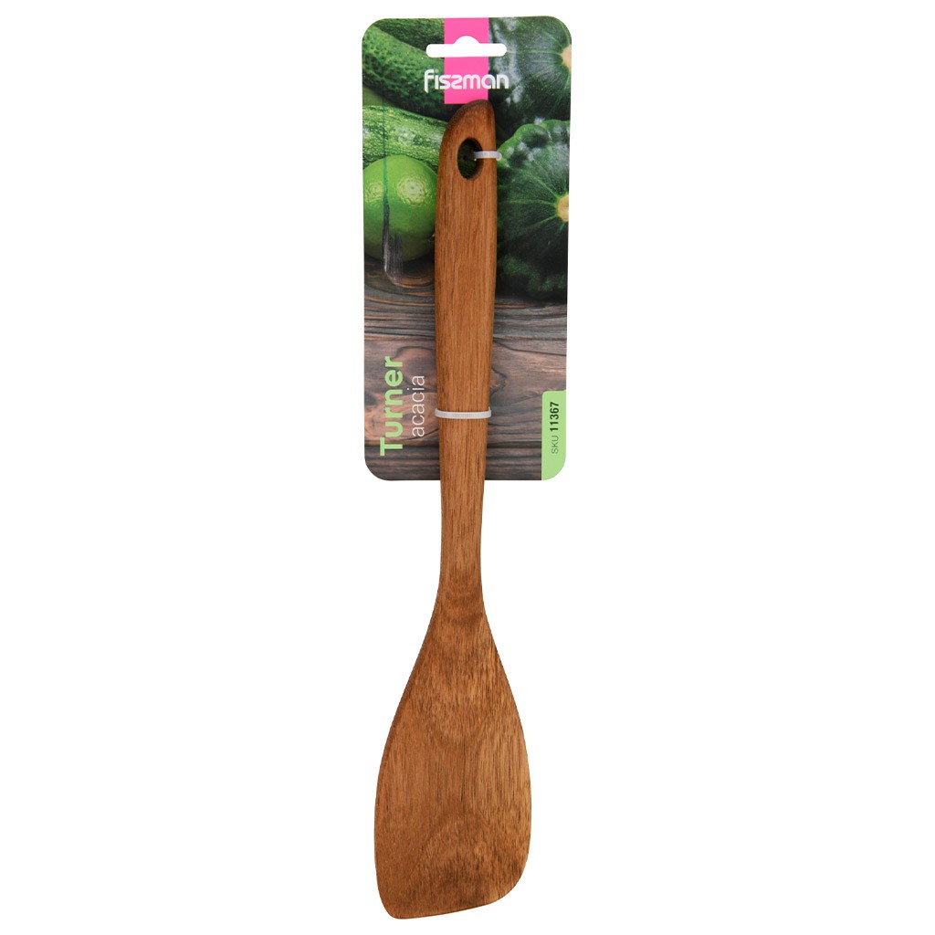 Ця дерев'яна лопатка від FISSMAN допомагає перемішувати і перевертати продукти під час приготування, а також подавати готові страви. З її допомогою можна викласти на тарілку котлету або стейк з риби або м'яса, не пошкодивши їх. Деревина акації, з якої виготовлена ​​лопатка, екологічна і не виділяє шкідливих речовин. Ця лопатка має гарний дизайн, зручну форму та ідеально гладку поверхню з плавними вигинами. Завдяки цьому продукти не пошкоджуються, коли ми перевертаємо їх або перекладаємо зі сковороди на тарілку. Стійка до високих температур і підходить для використання з посудом, що має антипригарне покриття. Її легко мити під проточною водою за допомогою м'якої губки. У будь-якій справі треба прагнути до досконалості. За допомогою правильно підібраних кухонних інструментів, з акації компанії FISSMAN, навіть кухар-аматор-початківець відчує себе професійним шеф-кухарем!
