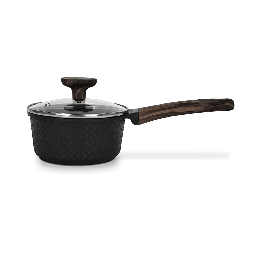 • Бакелітові ручки з soft-touch покриттям "під дерево" зручні у використанні, приємні на дотик, не ковзають, не нагріваються.