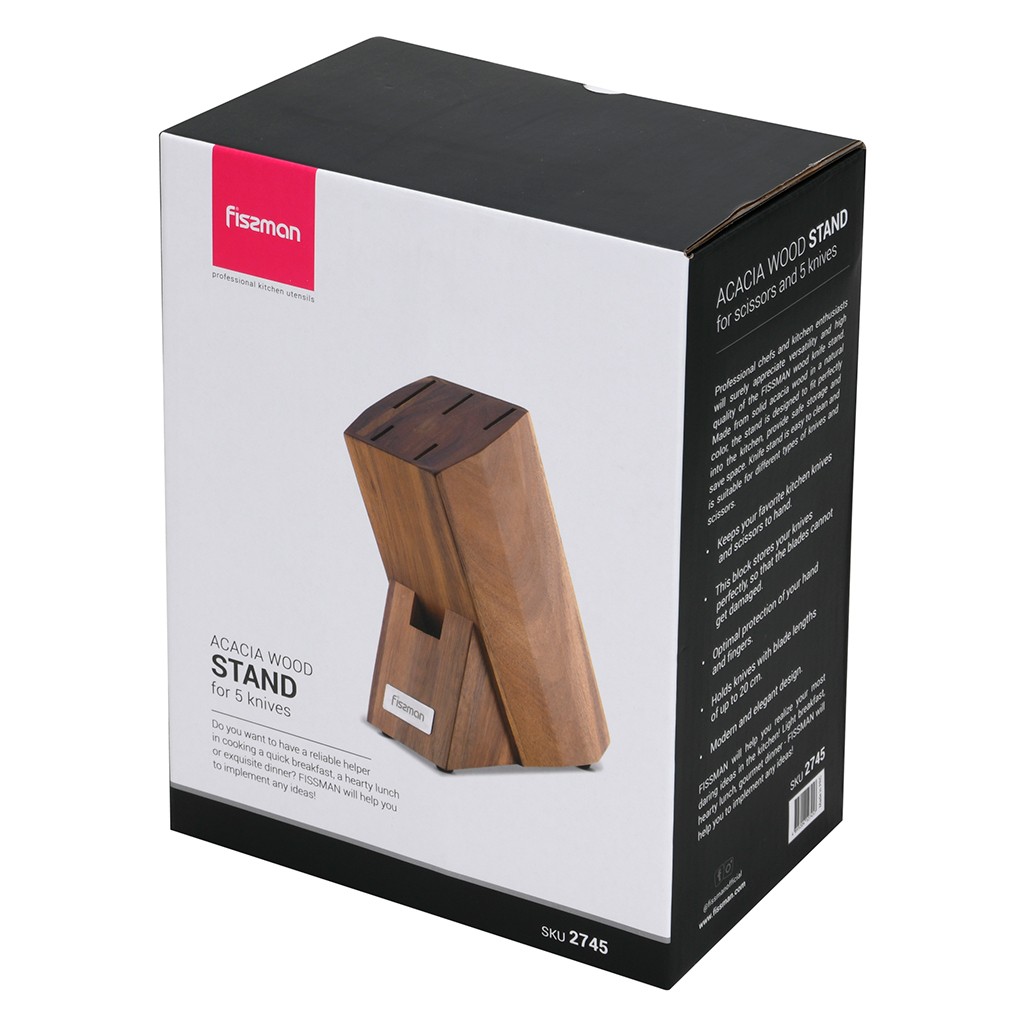 Професійні кухарі та кухонні ентузіасти, безперечно, оцінять універсальність та високу якість набору ножів у дерев'яній підставці від компанії FISSMAN.