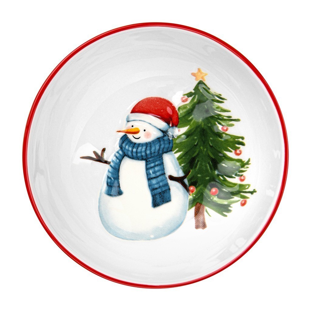 На дні миски розташоване рельєфне зображення сніговика та ялинки, що створює ефект «живого» малюнка. Рельєфна поверхня дозволяє відчути малюнок пальцями та насолоджуватись його красою при кожному використанні. Червоне окантування по краю миски підкреслює святкову тематику і гармонійно доповнює композицію. Миска створює святковий настрій: вже сам факт її появи на столі викликає теплі емоції та асоціації із зимовими святами.