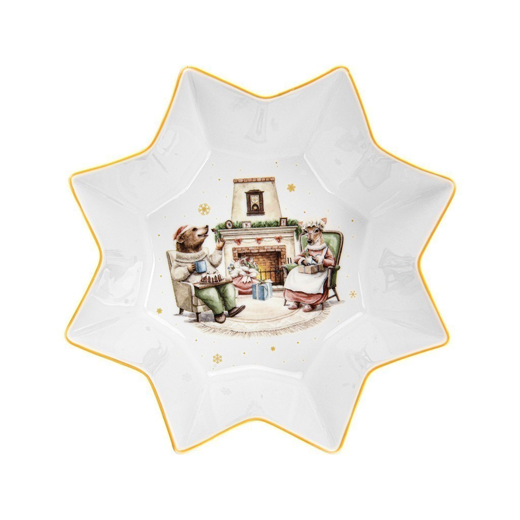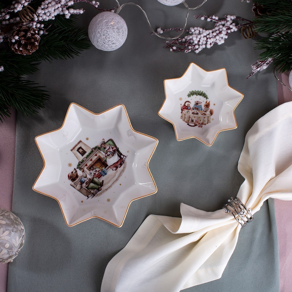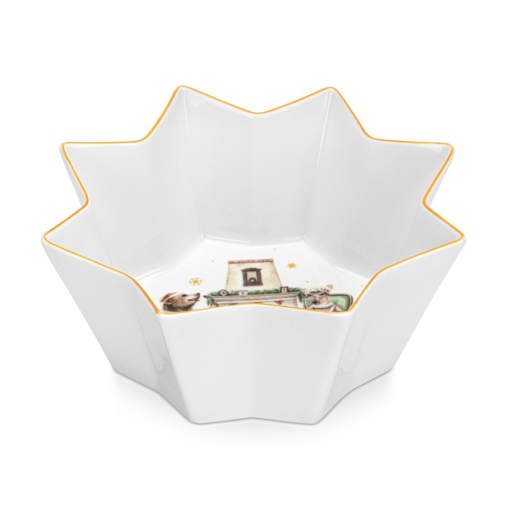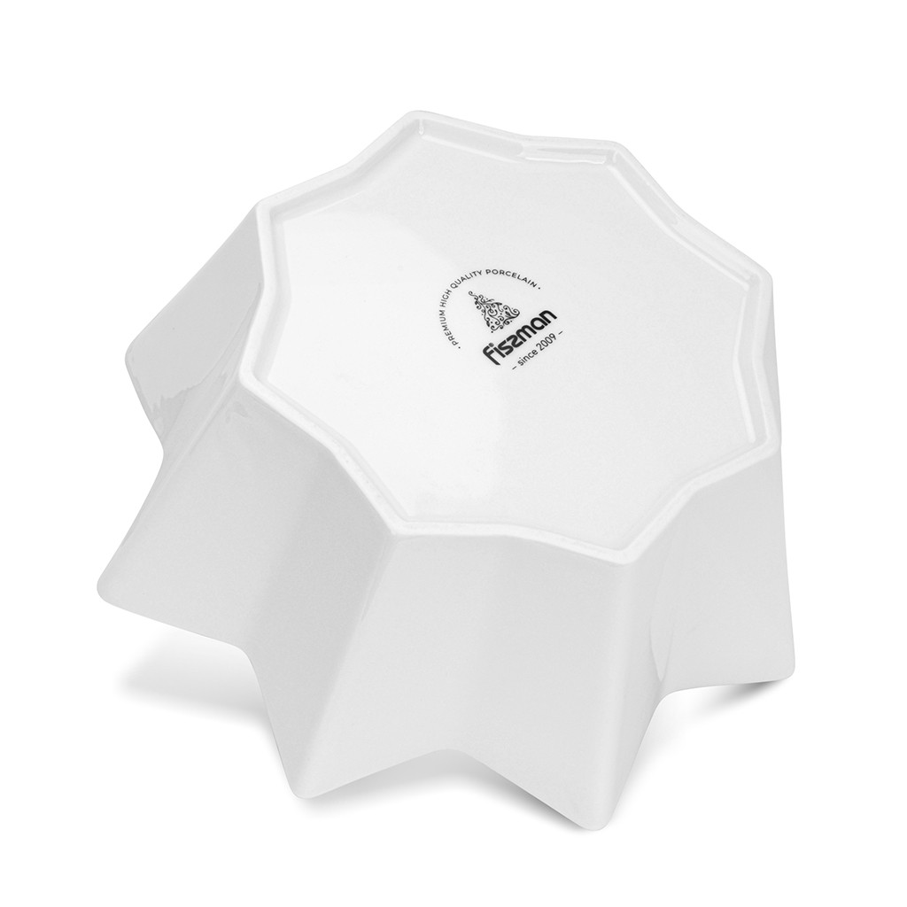 Уявіть: на вашому столі - не просто посуд, а витвір мистецтва з новорічної колекції MIRACLE. Багатокутна порцелянова миска 20 см з глибиною 8 см - це ідеальне поєднання форми, функціональності та святкового настрою. Створений за авторським дизайном нашої студії, цей посуд підкреслить навіть найпростішу страву, перетворивши її подачу на справжній ритуал.