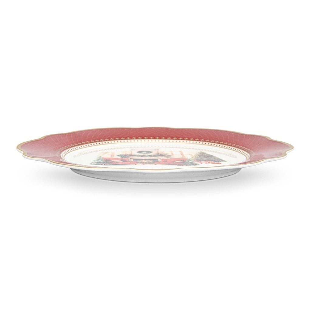 Справжнє свято починається з деталей. Тарілка CHRISTMAS EVE 27 см з преміального порцеляни з широким кантом червоного кольору прикрашений візерунками - це не просто посуд, а центральний акцент новорічного сервірування.