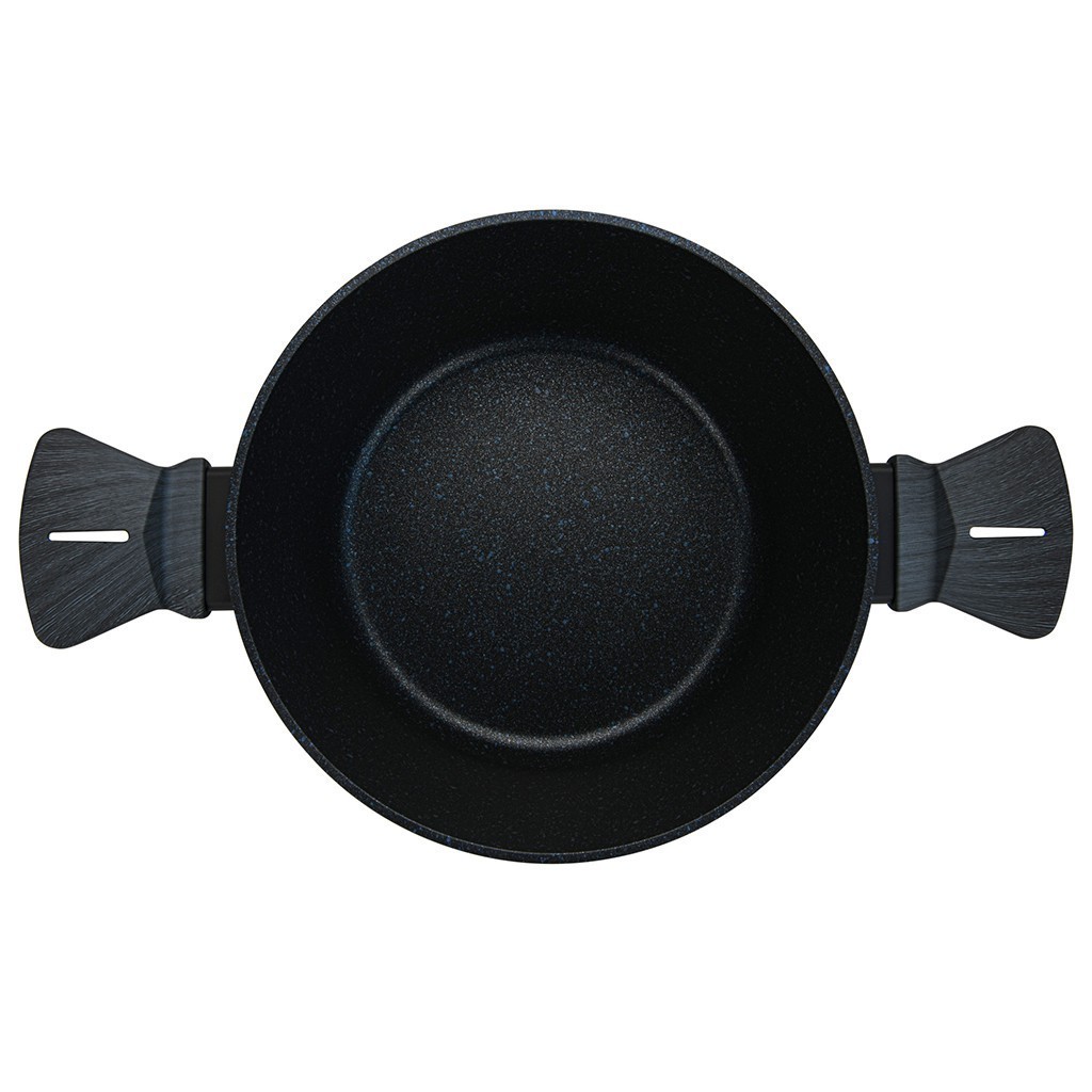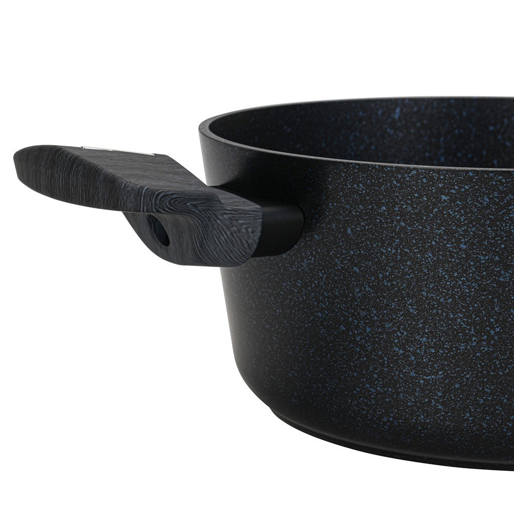 • Поверхность покрытия гладкая, с синими и серебряными вкраплениями. Посуда эффектно смотрится и способна стать украшением любой кухни.
