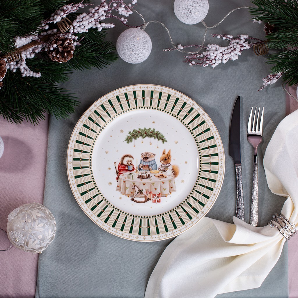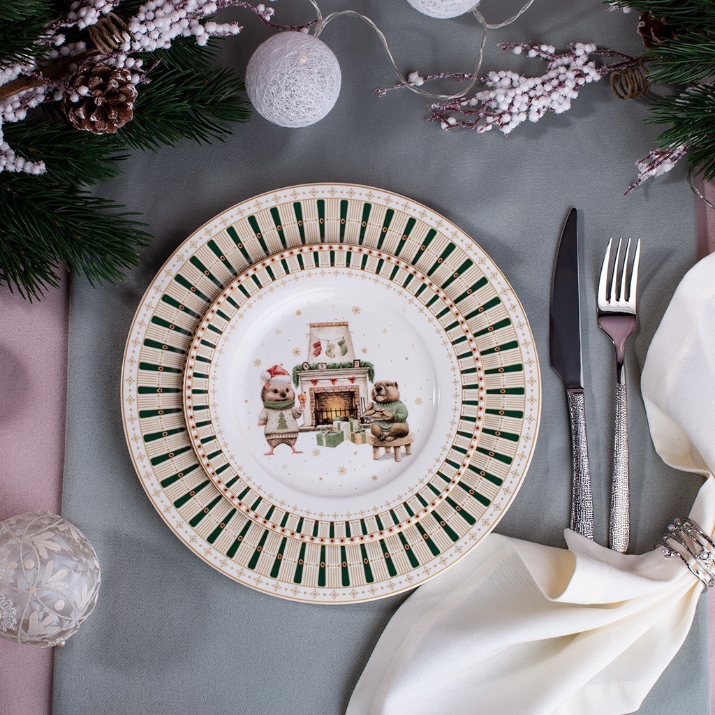 Как специалист по сервировке отмечу: здесь удачно подобраны толщина стенок и масса - тарелка ощущается лёгкой, но не «звончит» и не перегревается локально. Глазурь ровная, без «апельсиновой корки», деколь пропечена чётко - контур иллюстрации чистый даже в мелких деталях. Для подарочного сервиса в зимнем стиле - один из самых удачных вариантов в своей цене.