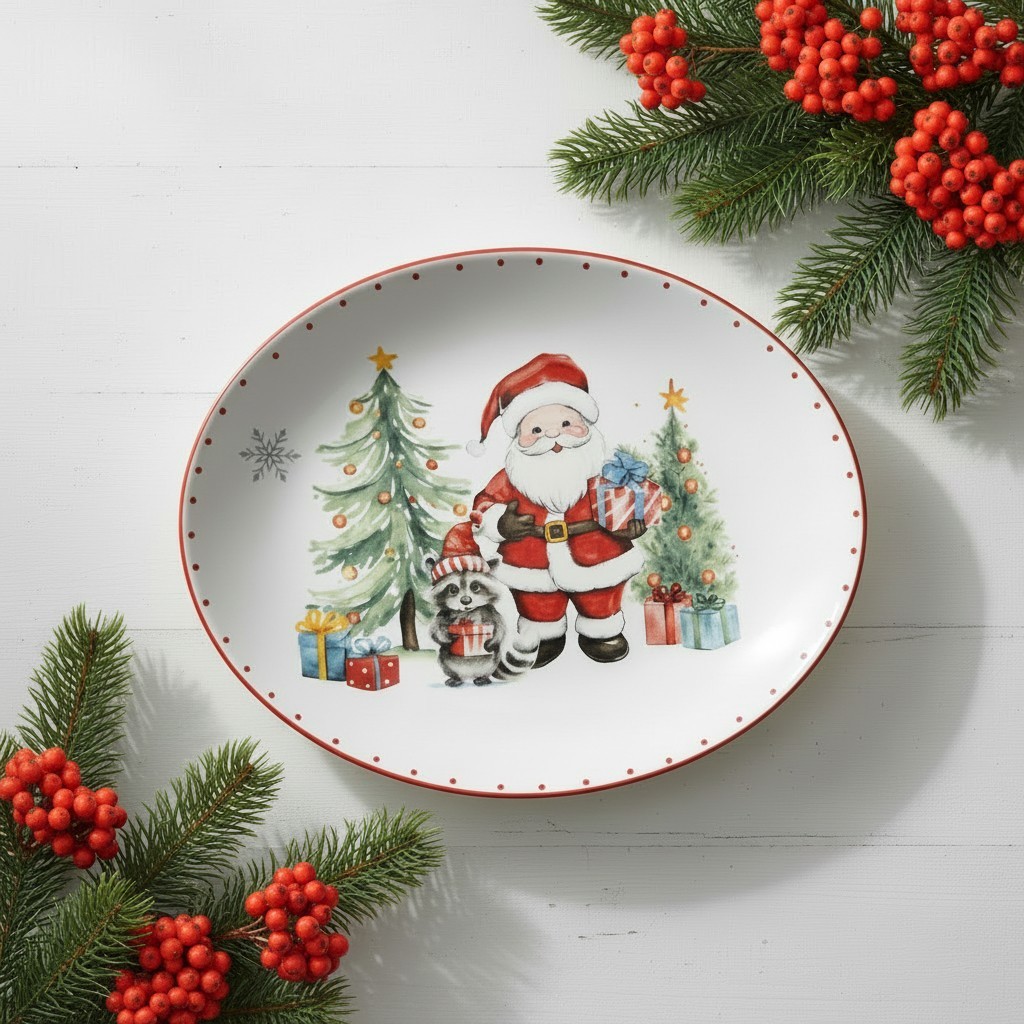 Сервировочное блюдо MERRY CHRISTMAS - изделие, созданное для тех, кто ценит не только функциональность, но и эстетическую привлекательность на столе. Изготовленное из доломита, оно сочетает в себе безопасность и рельефный праздничный дизайн, что придаёт изображению объём, глубину и тактильную выразительность.